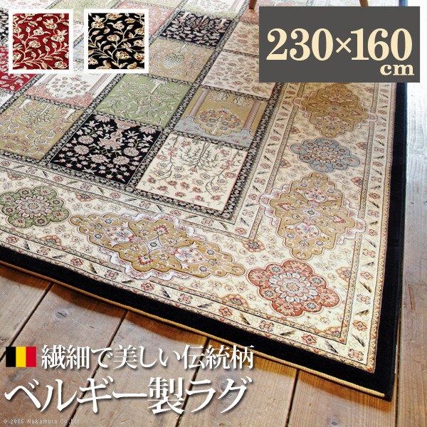 送料無料 ラグ カーペット ブラック 230x160cm 長方形 収納ベッド 3畳 ラグマット ベルギー製ウィルトン織ラグ リール 赤 ペルシャ絨毯 じゅうたん 高級感 植物柄 へシティ柄 絨毯 高級 ベルギー ウィルトン 床暖房 ホットカーペット対応 リビング アンティーク 北欧